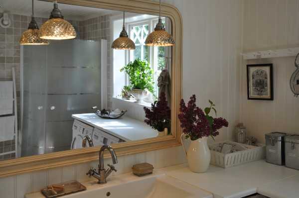 В таком помещении идеально будут смотреться небольшие комнатные растения, установленные на полочке или стенах, а зеркала с подсветкой или светильники подчеркнут нежный вид.