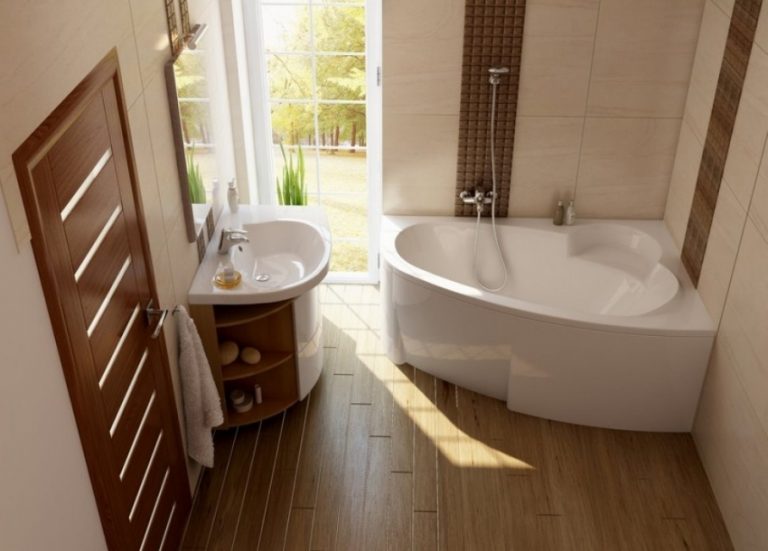 Оптимальным вариантом в такой ситуации будет установка угловой ванной, которая хоть и незначительно, но в малой степени всё-таки поможет сэкономить площадь помещения.