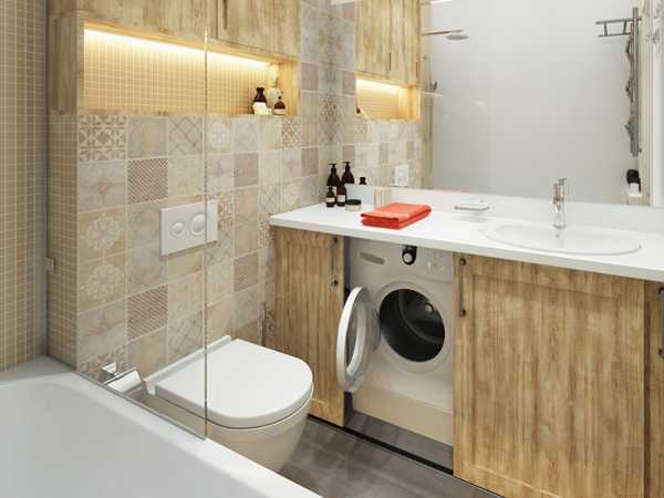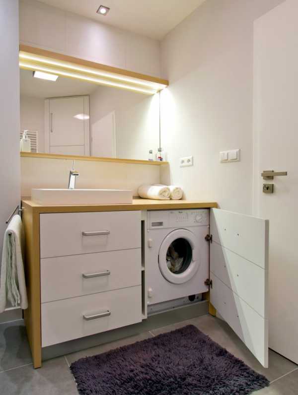 - Функционально размещать мебель. Например, стиральную машинку под раковиной.