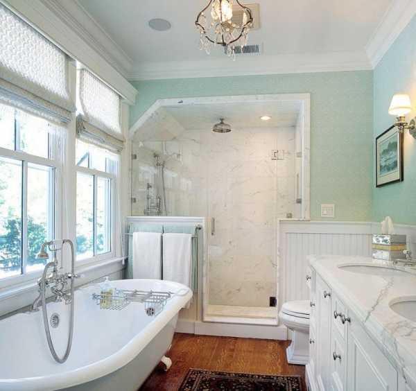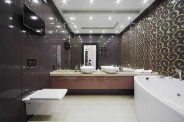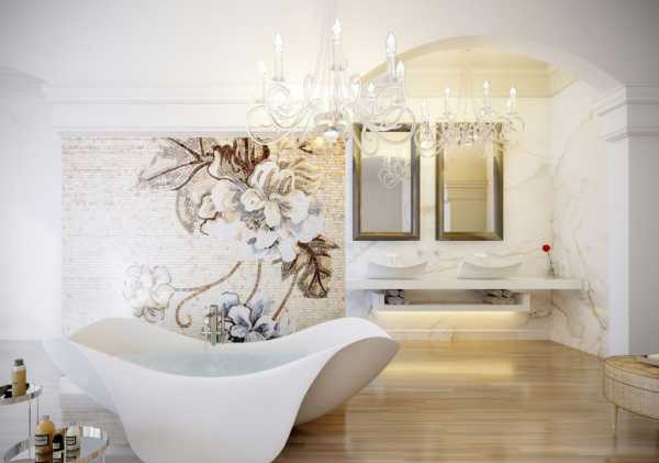Чтобы сделать освещение в большой и просторной ванной комнате, светильники можно использовать любые, хоть точечные, хоть люстры с торшерами.