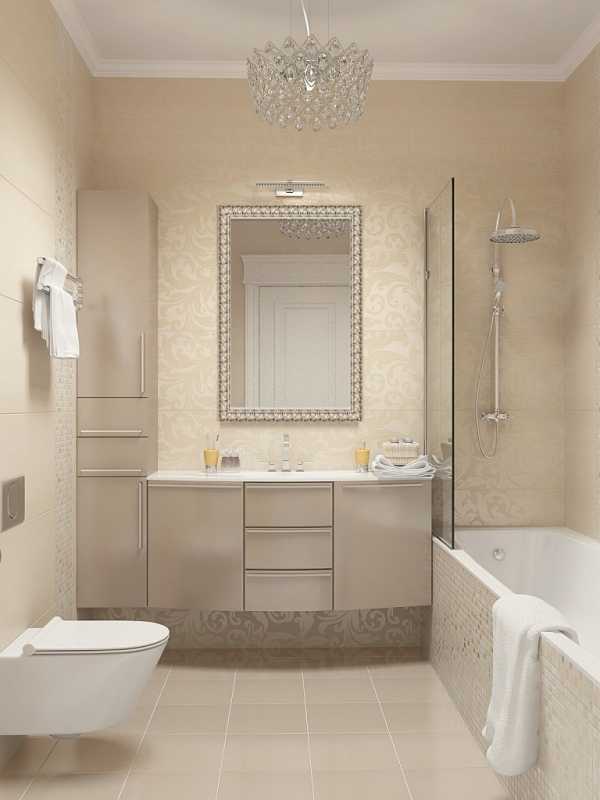 Следует также помнить, что дизайн должен соответствовать всем параметрам ванной комнаты. Главное её правило: