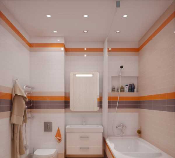 Распространенный вариант – размещение ванны или душевой кабины в один ряд с унитазом и раковиной. Унитаз может стоять или возле ванны, или около раковины с краю в зависимости от предпочтений.