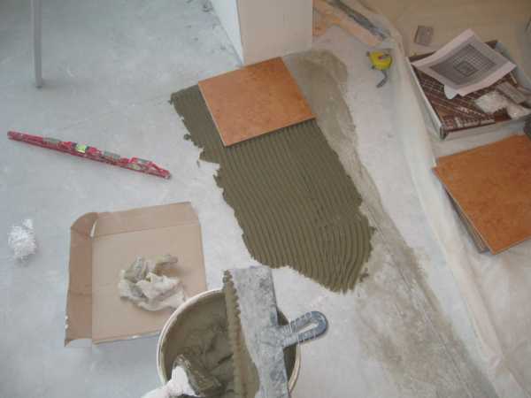 - Необходимо очень тщательно очистить поверхность перед укладкой плитки.
