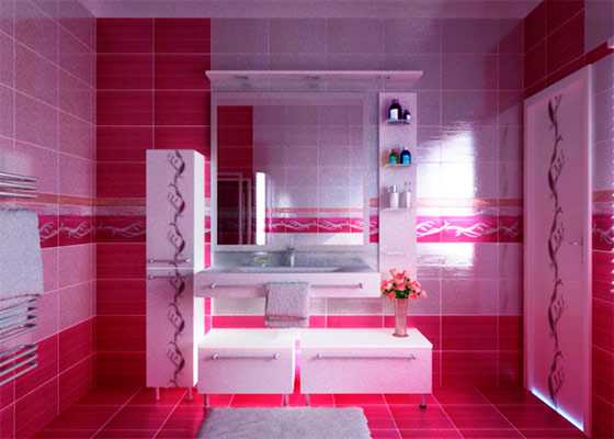 Для юных девушек – прекрасный вариант ванной, розового цвета.