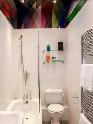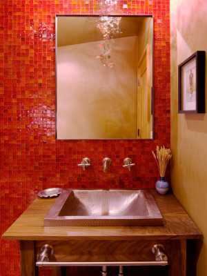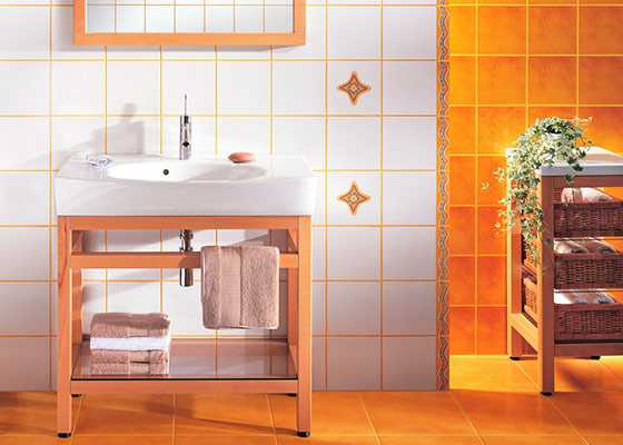 В ванной комнате хорошо смотрятся яркие стены
