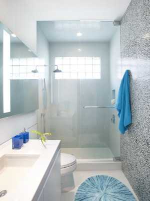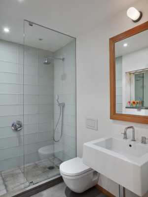 При помощи стеклянной плитки можно сделать перегородки в помещении ванной комнаты, причем достаточно стильные! Как вариант, ею также можете маскировать дополнительное освещение.