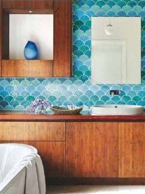 Благодаря тому, что у нее своеобразная структура, дизайнеры могут создавать совершенно неповторимые оформления облицовки ванных.