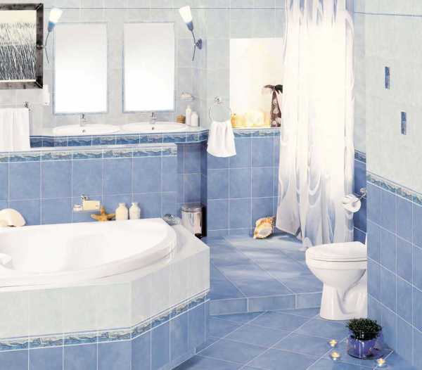Оригинальная идея – обустроить ванную в голубых тонах, с морской тематикой. Для чего потребуется некоторое декоративное оформление (подойдут даже ракушки, рыбки и т.п.). Конечно же, производители отделочных материалов это всегда берут во внимание. Поэтому в каждой коллекций всегда можно подобрать что-то подходящее для Вашего интерьера!