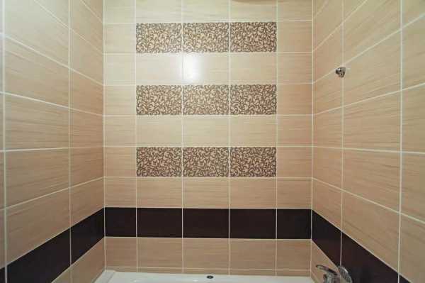 Самым популярным вариантом укладки является сочетание нескольких цветов. Внизу располагается темный оттенок, сверху светлый, середина декорируется. Данный образец отличается легкостью. Нет необходимости продумывать дизайнерское оформление, подбирать материал, который будет сочетаться. Чтобы реализовать такой проект, достаточно измерить помещение, и выбрать вид плитки. Количество материала определяется площадью комнаты.