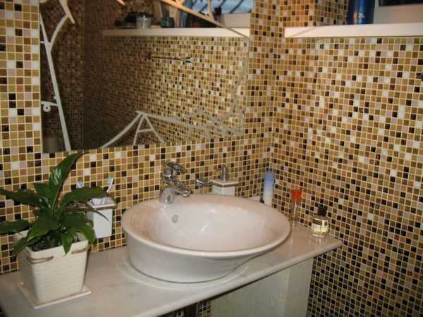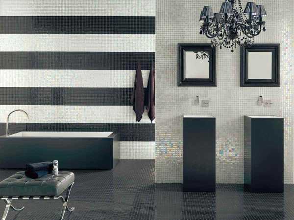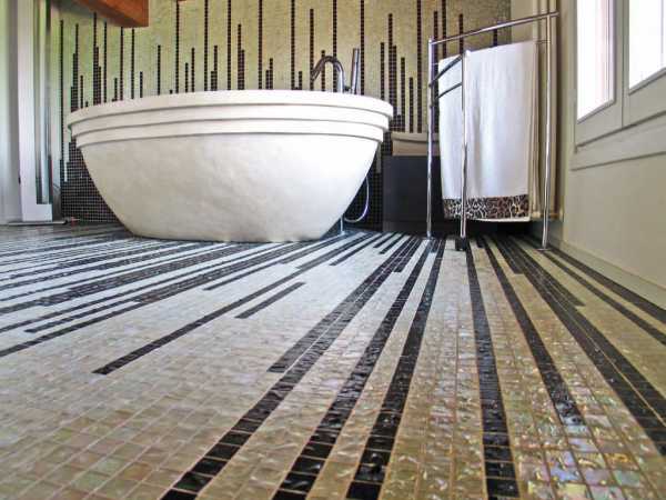 Плитку из мозаики чаще всего берут в небольшие комнаты. При помощи данного способа можно самостоятельно вносить изменения в вашей ванной, если покрытия пола и стен не достаточно ровные. Эту плитку можно гармонировать с плиткой других размеров.