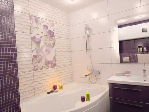 Говоря об отделке ванной комнаты и туалета, нужно сказать пару слов о разделении ее на функциональные зоны. Все-таки мы совмещаем два помещения в одном, поэтому зонирование здесь необходимо. Как мы можем осуществить эту затею? С помощью цвета! Обычно выделяют зону возле ванны декоративным рисунком или же контрастным цветом кафеля, также некоторые контрастные вкрапления можно добавить в зоне возле унитаза.