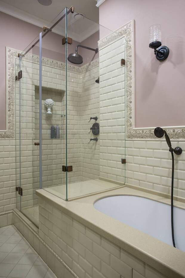 Сейчас в моде минимализм и простота, как вы помните. Поэтому, гораздо современней смотрится не готовая кабина, а выложенный плиткой квадрат, ограждённый небольшим бордюром и оснащённый раздвижными дверцами. Смотрится это так: