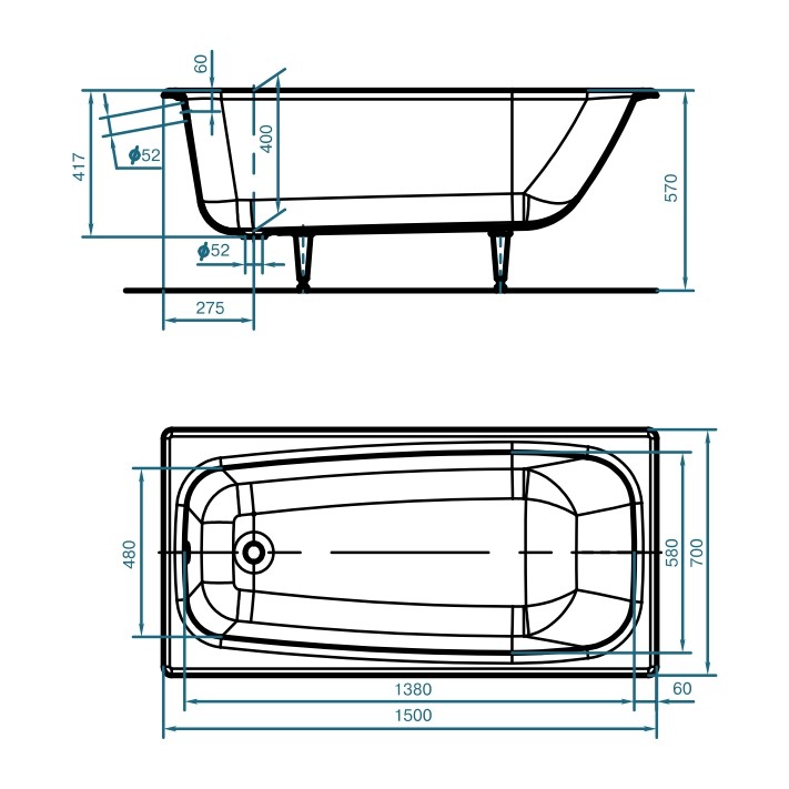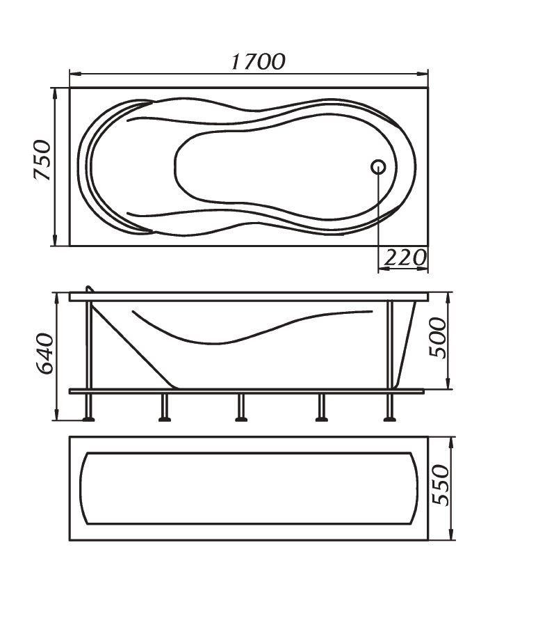 Как было отмечено ранее, габариты чугунных ванн в большинстве своем стандартные. Найти изделие необычной формы или с дополнительными атрибутами по типу подлокотников и выемок практически невозможно. Такие купели имеют прямоугольную форму и следующие размеры: