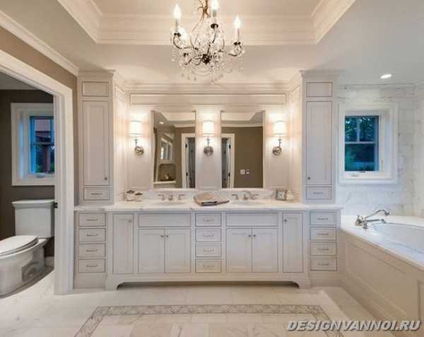 Не надо забывать об общепринятых классических приемах – установке колонн, размещении люстры из хрусталя, декорировании лепниной в венецианском стиле и витражными стеклами, которые отлично вписываются в дизайн сантехнического узла с большой площадью.