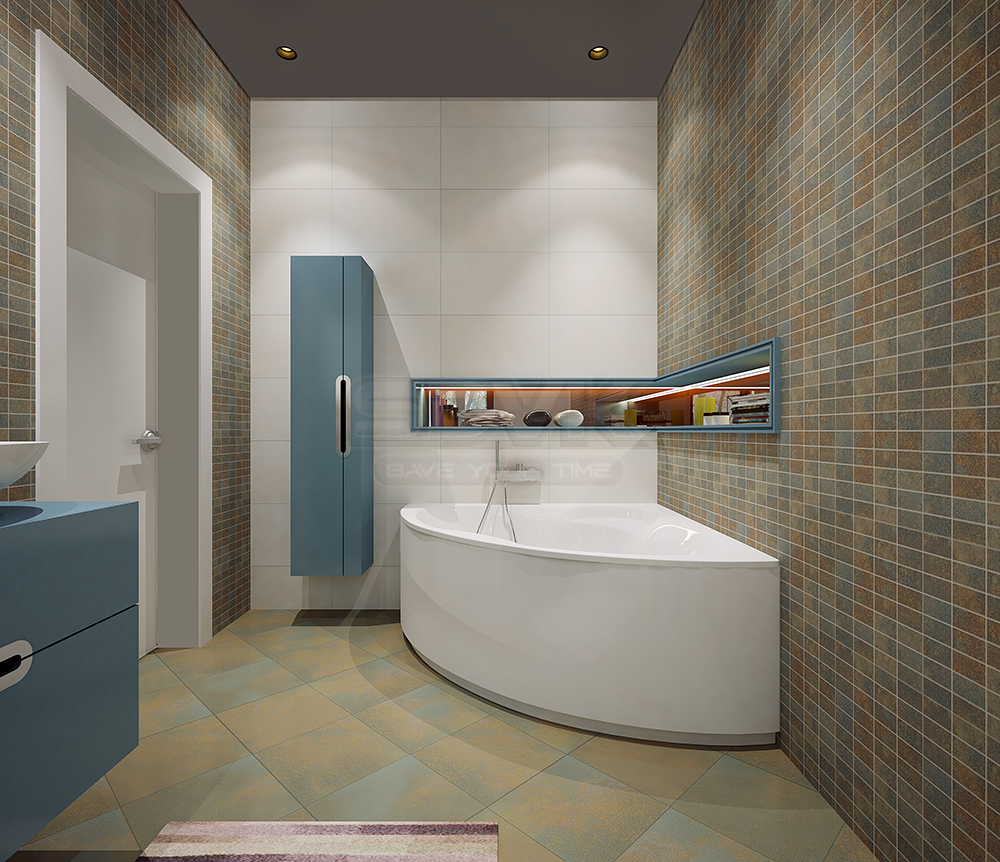 Отличный вариантом станет ванна ассиметричной формы, так как это помогает сэкономить площадь. Многие выбирают ванны треугольной формы, имеющие закругленные углы. Для стиля Хай-тек отличным вариантом станет ромбовидная ванна.