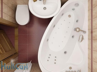 Угловые ванны смотрятся красиво по сравнению с классическими чугунными монстрами, одинаковыми у всех. Современные технологии позволяют делать из акрила любые формы, белоснежные или цветные джакузи разнообразной удобной и эстетичной формы хорошо смотрятся в комнате. Конечно, часто площадь не позволяет джакузи быть красивой, главное, чтобы все уместилось. Однако при грамотной расстановке, хорошем дизайне плитки и главное большой красивой белоснежной сантехнике даже в небольшой комнате будет на что полюбоваться.
