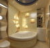 - Если вы приобрели «космическую» угловую ванну с гидромассажем и подсветкой, не стоит стараться вписать ее в классический интерьер или стиль «прованс».Во дворцах и деревнях никогда не было булькающих «летающих тарелок». Здесь подойдут только хай-тек или модерн в отделке.