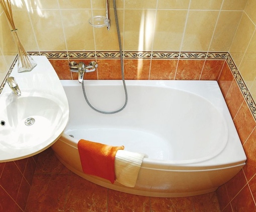 Экономия места | В небольшой комнате, где вдоль одной стены могла бы расположиться только небольшая стандартная ванна, можно поставить расширенную с одного бока угловую. |