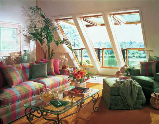 - интерьер комнаты необходимо обеспечить достаточным солнечны светом. Для этого придется встроит специальные мансардные окна или изменив слегка конструкцию крыши установить слуховое окно.