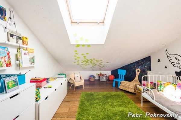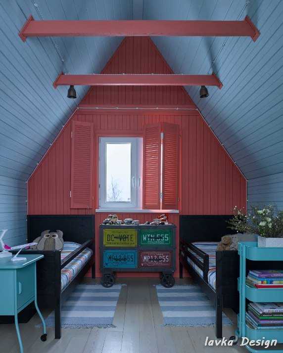 Детям жить под крышей нравится больше всего, к тому же, они не испытывают дискомфорта из-за низких потолков. Для них можно оформить комнату в самом необычном стиле, обустроив ее, например, как каюту корабля или мультифункциональную игровую.