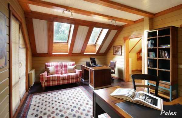 Таким же способом можно из мансардного помещения сделать спальню и рабочий кабинет или библиотеку. Только проводить потребуется уже другие коммуникации.