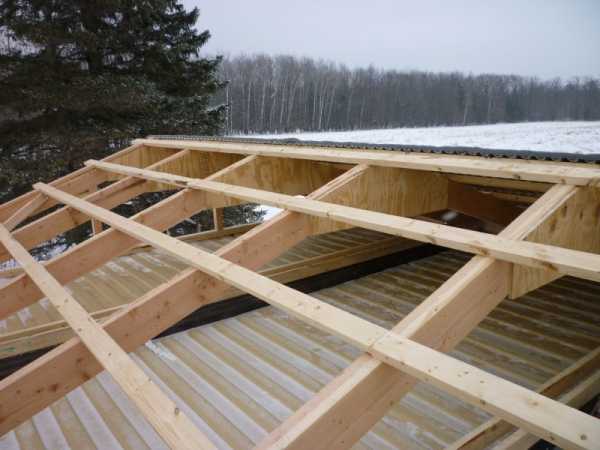 Наклонные — используются опоры разной высоты, на них монтируются балки под наклоном. Когда крыша односкатная, применяются внешние стены для монтажа. Если двускатная система — внутренняя и внешние стены. Не обязательно крепить стропильные ноги, достаточно их просто разместить по одной плоскости.