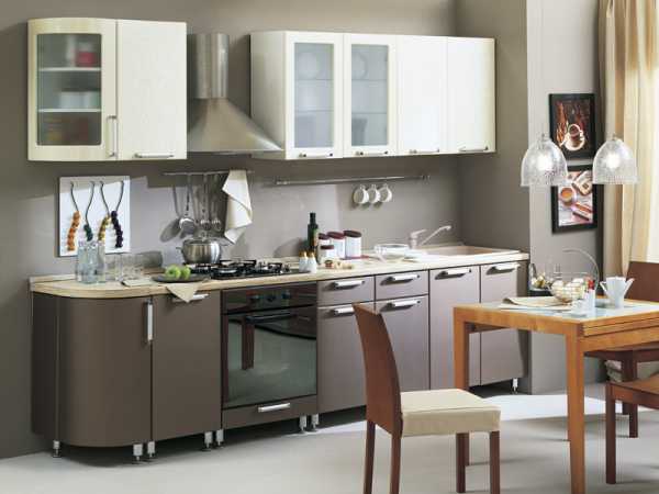 В современных малогабаритных квартирах это самый распространенный вариант планировки, а в узких помещениях – единственный выход разместить все необходимое для готовки.