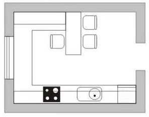 | Легко оформить рабочий треугольник, в связи с чем перемещение во время готовки будет быстрым и удобным. | Двоим людям будет сложнее готовить при такой планировке, так как пространство рассчитано на одного и доступ к оборудованию будет затруднен. |