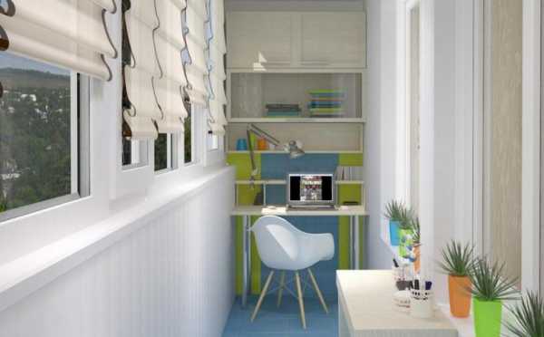 В малогабаритной квартире часто нет возможности уединиться для работы, и в этом случае очень уместно переоборудование балкона под рабочий кабинет, для чего обязательно нужно будет утеплить это помещение. Стены лучше оформить, как в офисе, в строгих тонах, используя однотонные обои или покрытые лаком деревянные доски.