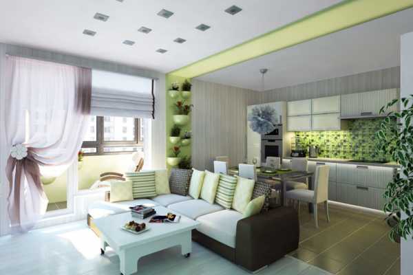 Иногда дизайнеры предлагают не вносить изменения в две маленькие комнаты и санузел, а остальные перегородки снести, таким образом, создавая квартиру со студийными элементами. Получится довольно большое помещение, которое вы можете поделить на зоны. Подсоединение лоджии или балкона поможет увеличить пространство, создаст благоприятные моменты и в оформлении необычного интерьера, подкрепленного эффектом простора и широты окружающего пространства.
