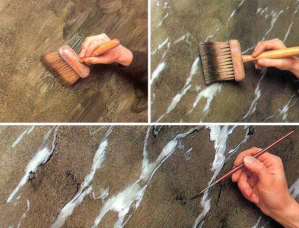 Покраска «под мрамор» требует особой аккуратности.