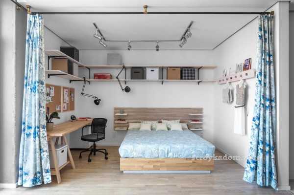 Для удобного пребывания в маленькой спальне иногда прибегают к ее зонированию. В таких комнатах могут быть: