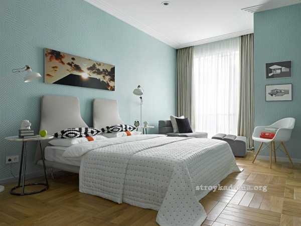 - Паркет или ламинат, уложенный по горизонтали, зрительно увеличит площадь спальни.