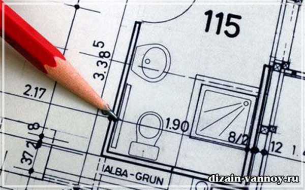 На планировку ванной комнаты влияет также длина стен и расположение входа.