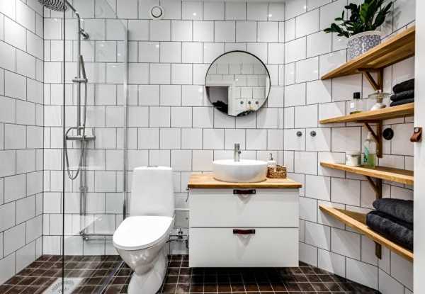 - В небольшом помещении ванной комнаты или отдельного санузла избегайте крупноформатной плитки – она также визуально уменьшает пространство.