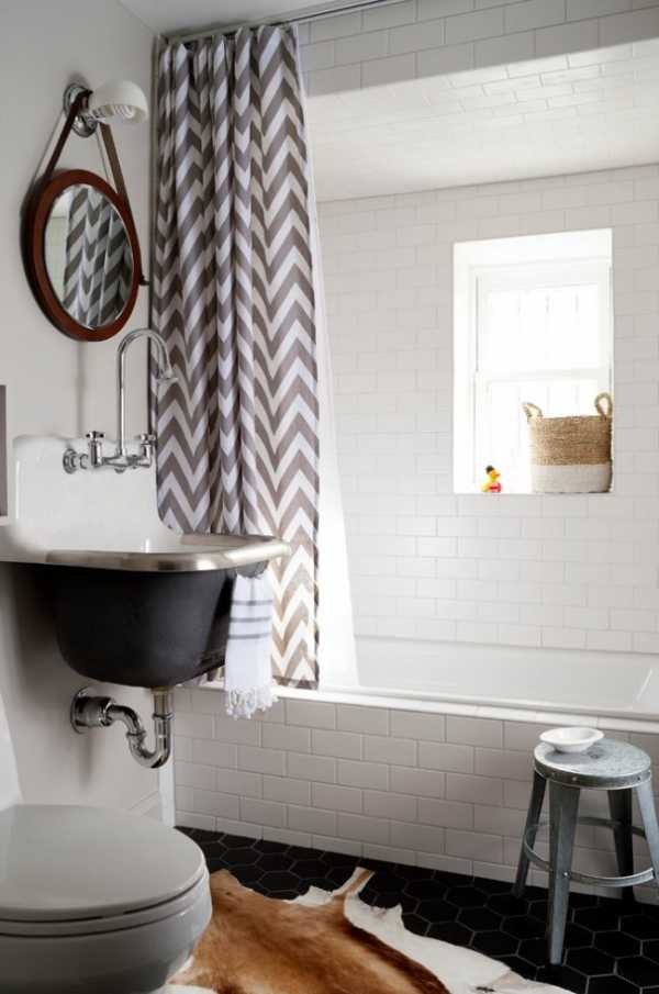 Небольшой совет: в ванной лучше всего использовать прорезиненные коврики с дырочками – практичный и долговечный, в отличие от пушистых покрытий.
