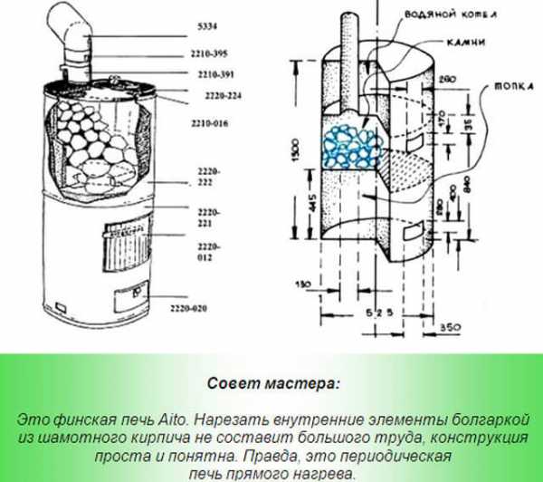 - Для финских саун. Сама конструкция таких печей предполагает выработку сухого пара и высокой температуры в парной. Они могут быть как электрическими, так и на дровах. При наличии специальных чертежей, сварка печи для бани финского типа может быть произведена самостоятельно (подробнее: «Какая финская печь для бани подойдёт лучше всего»).