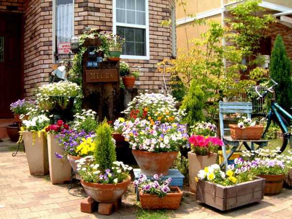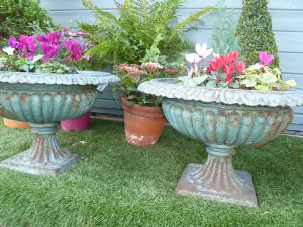Вазоны с цветочными композициями могут стать украшением сада