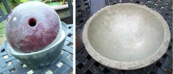 Есть интересной формы тазик или чаша? Тоже подойдет. А для формирования внутреннего объема можно найти что-то тяжелое, желательно правильной формы, но это абсолютно не принципиально. Подойдет даже шар от боулинга. Он хорош тем, что тяжелый и гладки — вынуть его можно легко.
