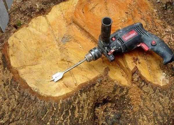 Основная задача — вынуть часть древесины так, чтобы образовалась емкость, которую можно заполнить землей. Есть несколько методов удаления сердцевины. Обычно берут дрель и сверло большого диаметра. Лучше работает сверло конической формы или в виде лопатки (как на фото).