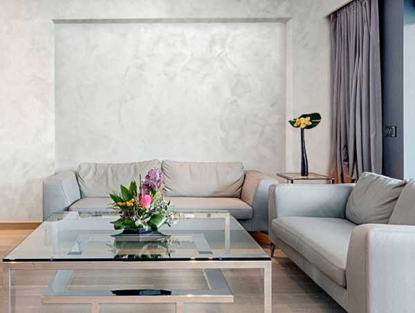 Светлая штукатурка в дизайне гостиной минимализмНедостатки венецианской штукатурки для отделки интерьера гостиной