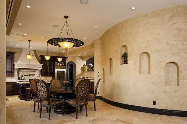 Декоративная итальянская штукатурка в обеденной зоне кухни частной резиденции