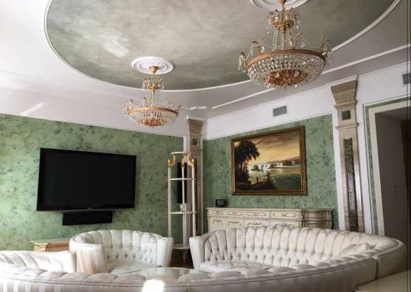 - «Тревиньяно». Отличительной особенностью данного типа венецианской штукатурки в интерьере гостиной является полупрозрачность слоев, что создает эффект мрамора. К тому же, в качестве основы используют полимер. Штукатурка «Тревиньяно» бывает самых разных цветовых оттенков, поэтому любая идея может быть воплощена в жизнь. Зачастую такую штукатурку используют для создания изысканных комнат классического, винтажного стилей, а также барокко.