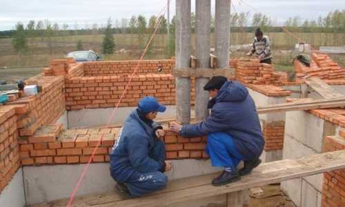 Кладка кирпича начинается с угла стены. Первый канал формируется после укладки 1,5-2 кирпичей.