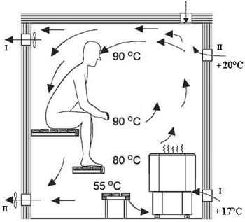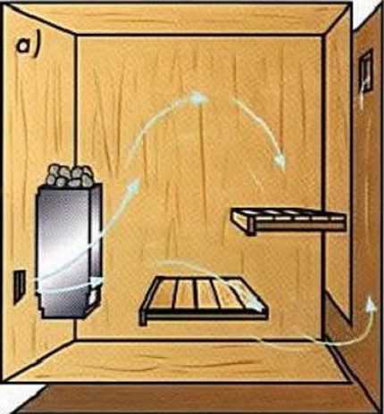 — особенность вентиляции не позволяет перемешивать воздух во всем помещении, поэтому неизбежно возникают «мертвые» зоны — отдельные места в парилке, где образуются сквозняки или застаивается воздух;
