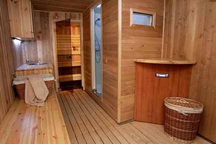 - под полом предбанника обустраивают воздухопровод выхода горячего воздуха из парной, улучшая отопление.