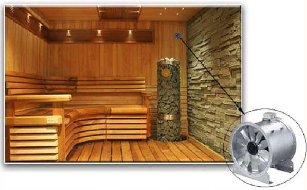 Комбинированная вентиляция в баню требует использования вентиляторов с уровнем защиты не меньше IP44 с теплостойкостью порядка 130 градусов.