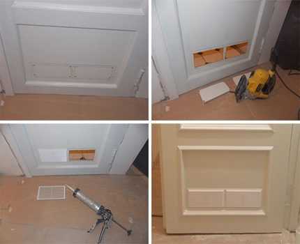 - монтаж специальных вентиляционных отверстий, которые представляют собой обыкновенные дыры в двери, закрытые специальными декоративными элементами;