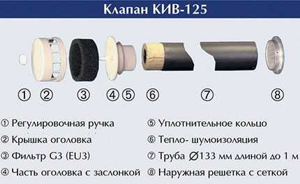 Все зазоры между стеной трубкой необходимо заполнить монтажной пеной, трубку на стене с наружной стороны нужно закрыть специальной декоративной решеткой и заштукатурить вокруг, если это требуется. Далее, внутри помещения крепится короб из комплекта клапана, он фиксируется к стене на дюбеля. После этого короб заполняется шумопоглощающими материалами, которые также должны входить в комплект поставки клапана. Далее устанавливается клапан, и короб закрывается лицевой крышкой.