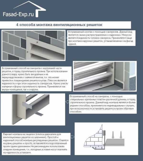 Данное описание процесса монтажа достаточно усредненное. Некоторые типы решеток могут устанавливаться по-другому и держаться в стене при помощи распорок и т.д. В целом же в этом процессе нет ничего сложного, и при желании вы сможете справиться с установкой решеток самостоятельно.